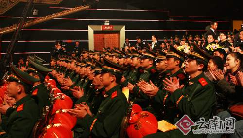 頒獎晚會現場,來自全省16個州市的民警為當選者熱烈鼓掌 本網訊 (記者 張 正)12月8日晚,云南藝術劇院彩旗飄展,掌聲陣陣,由中共云南省委宣傳部、省委政法委與云南省公安廳聯合舉辦的“紅河杯·云南省首屆百姓最喜愛的十大人民警察”評選活動進入高潮,直播的“十大民警”電視頒獎晚會眾人矚目,經廣大群眾的集中檢閱,任秀虹、余鈺、譚紅鋒、張藝鐘、王志堅、張華建、次里丁主、朱紹平、駱文龍、段松10位民警從30位候選人中脫穎而出,當選云南省首屆百姓最喜愛的十大人民警察。