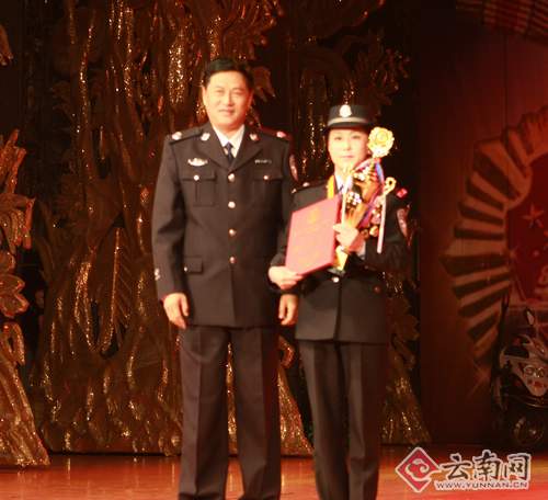 云南省公安廳廳長孟蘇鐵為任秀虹頒獎