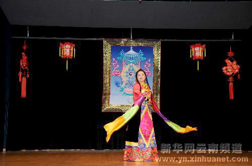 2月20日,在瑞士蘇黎世舉行的中國云南迪慶藏族歌舞團專場演出上,卓瑪拉初演唱《祝酒歌》。當天,中國云南迪慶藏族歌舞團在這里舉行專場演出,受到旅居瑞士的華人華僑、中國留學生以及瑞士友人的熱情歡迎。 新華社記者楊京德攝(來源:新華網云南頻道) |