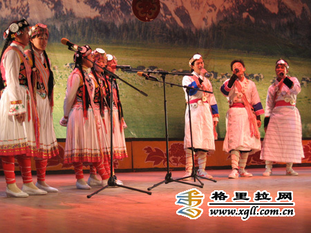 3月6日,維西縣慶祝"三八"婦女節文藝匯演在縣影劇院隆重舉行。圖為康普鄉代表隊表演的文藝節目《情歌對唱》。(楊洪程 攝)