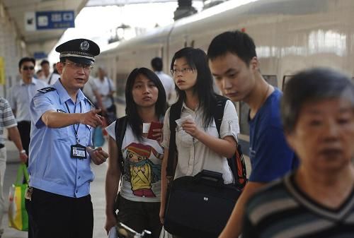 7月1日,旅客在向合肥火車站派出所民警咨詢乘車情況。新華社記者 李健攝