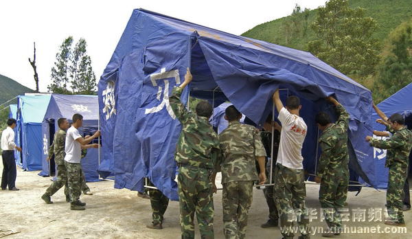 7月10日,武警官兵和民兵在云南大姚縣金碧鎮白鶴村為受災群眾搭建救災帳篷。當天凌晨,云南楚雄姚安“7·9”地震抗震救災指揮部發布消息說,姚安地震已造成姚安、大姚、牟定、南華、元謀、永仁6縣55個鄉鎮31.5萬戶、126萬人受災,因災死亡1人,受傷324人,民房受損39794間,倒塌1.8萬間。目前,地震災區抗震救災各項工作已全面展開,水、電、路和通訊等基礎設施已大部分恢復,災民生活得到了妥善安置。 新華社發(夏天域 攝) 姚安縣震區傷員得到有效救治 據姚安縣縣長李建波10日晚介紹,目前共有600多名醫護人員已連續幾十個小時奮戰在姚安地震災區一線進行醫療救治、消毒防疫工作。目前,地震災區傷員得到有效救治,傷情基本穩定,災區防疫工作有序展開。 李建波告訴記者,姚安地震發生后,云南省衛生部門的救援人員立即趕赴現場開展醫療救治工作。省、州、縣醫護人員組織了8支醫療隊、6支疾控隊共602人投入抗震救災工作,這些醫護人員本著對人民生命高度負責的精神,連續幾十個小時在地震災區一線救治受傷群眾。據初步統計,目前,姚安全縣已出動救護車輛16輛,往返災區接送病人36次,縣級各醫療機構共收治傷員50人,目前傷員傷情穩定,各項醫療救治工作正在緊張有序進行中。 詳細>> 財政部民政部下撥3800萬應急資金 省財政已投入2000萬元抗震救災 記者昨日從省民政廳救災處和省接收救災捐贈辦公室獲悉,昨日下午,財政部和民政部聯合發來《關于下達2009年中央自然災害生活補助資金的通知》,決定撥給云南中央自然災害生活補助資金3800萬元,幫助解決受災群眾臨時生活困難。目前,該補助資金已下撥到云南。 詳細>> 7700頂帳篷調抵姚安地震抵災區 據云南省民政廳的消息,截至11日12時,云南省共計調往姚安地震災區帳篷7700頂、棉被11500床、彩布條1300件、衣服5000套。(完) 四川支援云南姚安地震災區棉被2萬床 據云南省民政廳11日中午最新的消息,四川省政府決定支援云南姚安地震災區棉被2萬床。11日,這些棉被已開始在四川省裝車,并將陸續運往云南姚安地震災區。(來源:新華網云南頻道) |