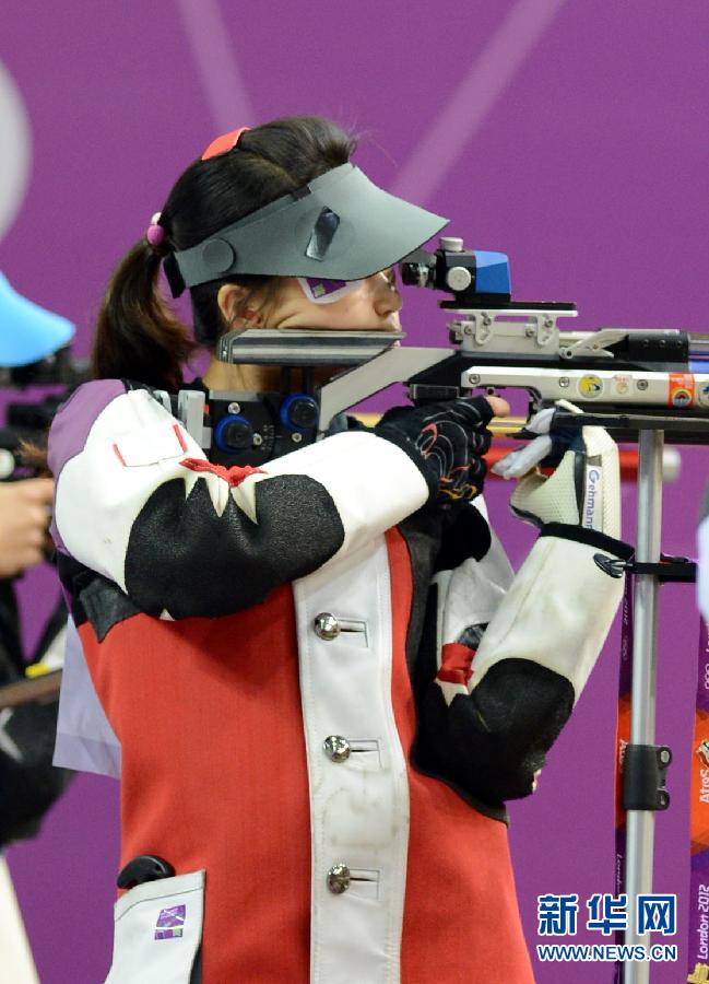7月29日,郭文珺在比賽中。當日,在倫敦奧運會女子十米氣手槍決賽中,中國選手郭文珺獲得冠軍。 新華社記者殷剛攝
