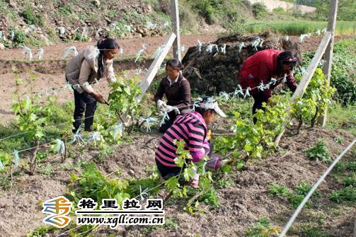 香格里拉網訊 維西縣葉枝鎮拉八科村民在地里修剪葡萄苗。近年來,葉枝鎮推進特色產業建設,葡萄種植受到村民歡迎。(邵涵瑤 攝)