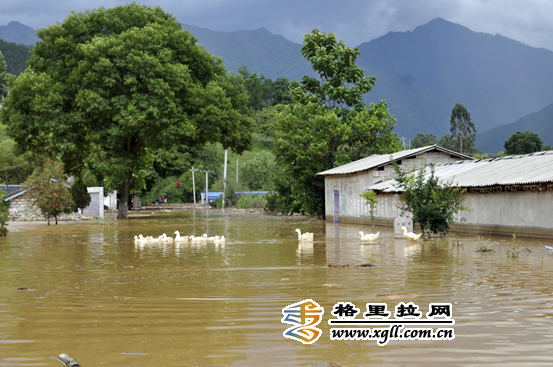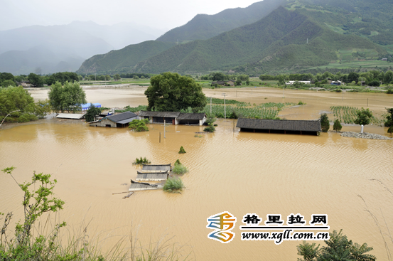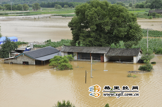 士旺村被淹沒的農田里1米多高的玉米苗連影也看不到,房屋只見屋頂。?