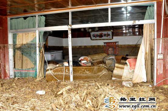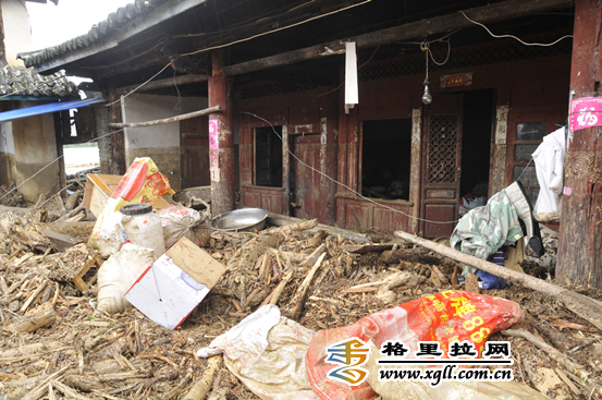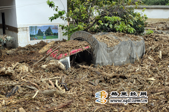 士旺村村民楊紅春家,院內灌滿了近兩米深的淤泥雜物。