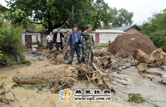 州委常委、香格里拉縣委書記余勝祥在士旺村查看災情。 |