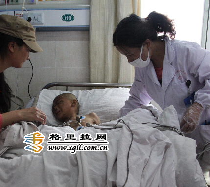 醫生為上江鄉泥石流受傷女孩醫治。(施學群 攝)