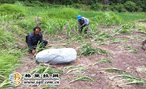 金江鎮興隆村唐金榮夫婦查看自家受災田地。(李杰 攝)