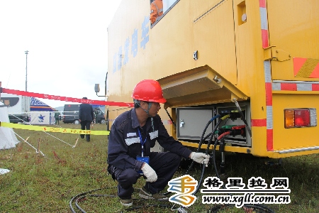 技術人員檢查應急供電車。