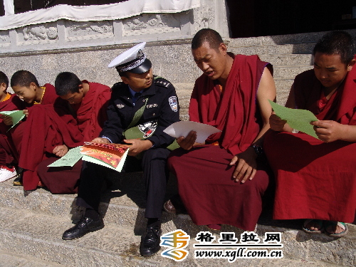 梁偉到寺院進(jìn)行交通安全宣傳。