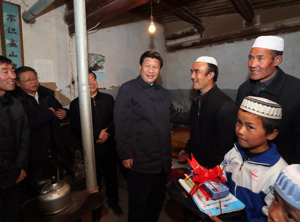 2013年2月3日,習近平來到甘肅省東鄉族自治縣布愣溝村困難群眾馬麥志家中看望,并給馬麥志的兩個兒子帶來了學習用品。