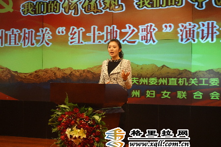 演講比賽現場。 香格里拉網訊 (記者 施學群) 25日,為紀念世界反法西斯戰爭勝利暨中國抗日戰爭勝利70周年,州直機關工委主辦、州婦女聯合會協辦的第十屆“紅土地之歌”演講比賽州直選拔賽在迪慶煙草公司會議室舉行。 演講比賽以“我們的價值觀 我們的中國夢”為主題,19名參賽選手結合本系統、本部門、本單位實際,用鮮活生動的典型事例和真實感人的質樸語言,講述了自己或身邊共產黨員、廣大基層干部甘于平凡、不畏艱難、團結互助,為追求中國夢、事業夢、個人夢而堅守理想信念,不斷拼搏的感人事跡,抒發了熱愛家鄉、愛崗敬業、無私奉獻的思想情懷。現場氣氛熱烈,不時爆發出陣陣掌聲。 比賽評選出一等獎1人、二等獎2人、三等獎3人。胡壽英、楊秀英兩位選手將代表州直機關參加全州選拔。 |