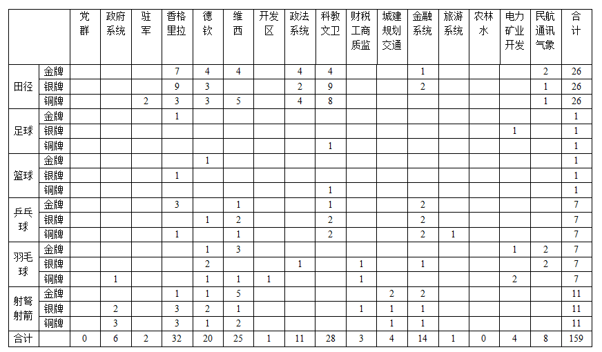 迪慶州第八屆運動會獎牌榜(9月18日)