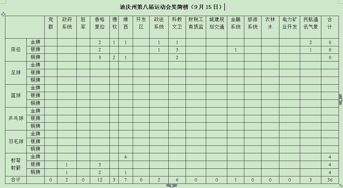 迪慶州第八屆運動會獎牌榜(9月20日)