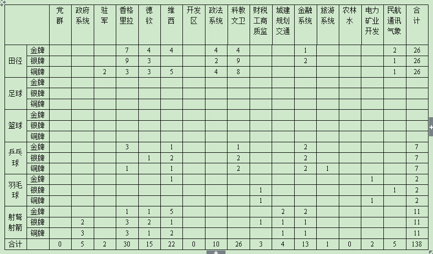 迪慶州第八屆運動會獎牌榜(9月25日) ? 迪慶州第八屆運動會獎牌榜(9月24日) ![]() 迪慶州第八屆運動會獎牌榜(9月22、23日)