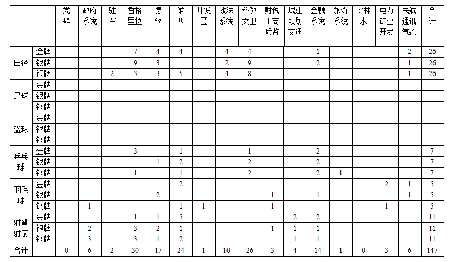 迪慶州第八屆運動會獎牌榜(9月17日) ?