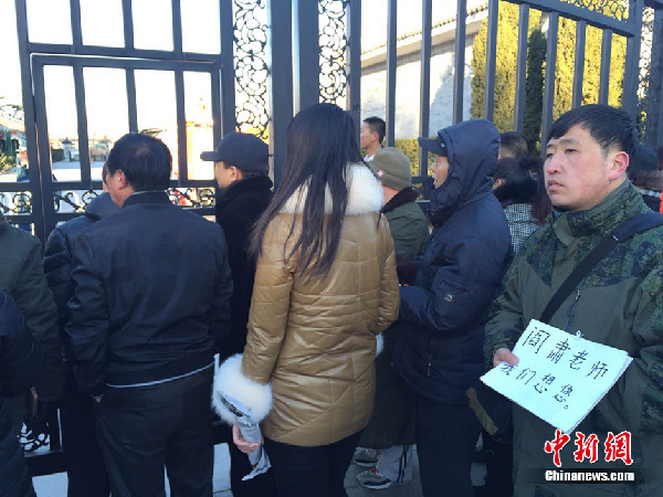 2月18日上午9點(diǎn),閻肅追悼會(huì)在北京八寶山舉行,社會(huì)各界人士前來送別。2016年2月12日3時(shí)07分,著名藝術(shù)家、空政文工團(tuán)創(chuàng)作員閻肅同志因病在北京逝世。隨后閻肅的兒子發(fā)布微博稱,“我父親閻肅平靜地離開了塵世,沒有任何痛苦,就像睡著了一樣。老爸可能覺得已經(jīng)完成了自己的使命,所以就這么離開了。” (記者 金碩攝 來源:中新網(wǎng))