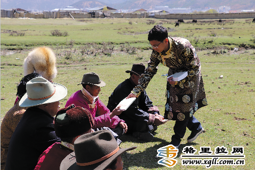 向農牧民發放《讀本》。