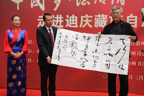 7月3日,“中國夢·法治情”——普法萬里行走進迪慶法治文化交流活動在迪慶州文化館正式啟動,活動得到了州內外社會各界知名人士的大力支持與廣泛關注。 活動吸引許多書法愛好者參觀。 “中國夢·法治情”——普法萬里行走進迪慶法治文化交流活動是國內法治文化專家學者以書法美術展覽、法治講座、書畫交流活動為載體,將嚴謹繁雜的法律條文以傳統書法美術文化形式呈現出來,這不僅生動地向社會普及了法治知識,更是法治文化建設活動品牌創新的有益嘗試,為藏區群眾帶來了一場豐盛的法治文化大餐。? 贈送書法作品。 活動選取黨和國家領導人、共和國部長、將軍及全國各地書畫藝術家創作的百余幅法治書畫精品進行展覽,目的是讓迪慶人民感悟法治,提高法律素質。在州博物館、紅軍長征博物館等地舉行的法治文化交流,拉近法律知識與民眾之間的距離,將提高法律意識與實現中國夢結合起來,助推法治迪慶建設。 接下來還將通過開展法治講座、法治培訓等一系列法治文化交流活動,提高法治宣傳效果,為依法治州、依法治省打下牢固的基礎,為實現中央提出的“四個全面”戰略布局、實現“兩個一百年”奮斗目標、實現中華民族偉大復興的中國夢作出應有的貢獻。 |