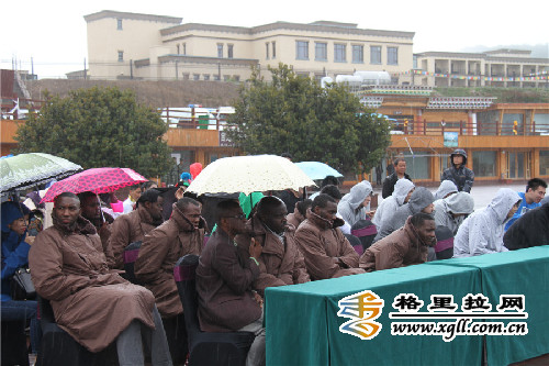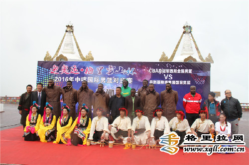 28日上午,“迎奧運 梅里雪山杯”2016年中喀國際男籃對抗賽在德欽縣飛來寺觀景臺召開新聞發布會。29日晚上8點,來自非洲的喀麥隆國家籃球隊和2015-16賽季CBA總冠軍四川金強隊將在德欽縣體育館一決高下,為德欽群眾獻上一場高水平籃球比賽。 ![]() 高原藏區迎來了國際賽事,老天都來湊熱鬧了,讓大家淋了一身的雨。 ![]() 現場的喀麥隆球員頗為引人注目,由于從炎熱的非洲趕到了清涼的高原德欽,又適逢雨季,溫度只有10度左右,每人都穿著一件棉大衣,煞是有趣。 ![]() 雖然今早下起了雨,但是大家興趣高漲,看著歡快的弦子舞,現場許多球迷身著艷麗的民族服飾,歡呼鼓掌,慶祝國際賽事落戶德欽。