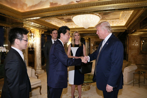 ??? 美國(guó)候任總統(tǒng)特朗普近日在紐約的“家中”——特朗普大廈接待了日本首相安倍晉三,兩人實(shí)現(xiàn)首次“面對(duì)面”會(huì)談,這也是特朗普當(dāng)選美國(guó)總統(tǒng)后第一次與外國(guó)領(lǐng)導(dǎo)人會(huì)面。 安倍“覲見(jiàn)”特朗普 “亡羊補(bǔ)牢”為哪般? 美國(guó)大選結(jié)局強(qiáng)烈震動(dòng)了日本,安倍政府驚慌之余緊急與特朗普?qǐng)F(tuán)隊(duì)聯(lián)系,安倍改變了去秘魯參加APEC峰會(huì)的行程,專門在紐約停留,“覲見(jiàn)”特朗普。