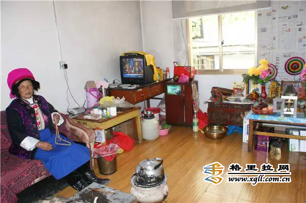 記者走進迪思央宗老人的房間,看到房間里擺放著一臺電視,電視上正在播放著文藝節目,還安裝了一臺電話,老人說假如她們有什么事情就給建塘鎮政府的人打電話,他們馬上就會趕過來的。屋里還放有一個兩人沙發,面前一個火盆和一個電爐,供有佛像的桌上點有酥油燈,還擺放了水果,里間是臥室,臥室桌上放滿了新鮮的酥油,老人說是親戚朋友和好心人送的。
