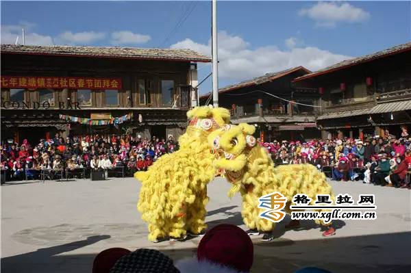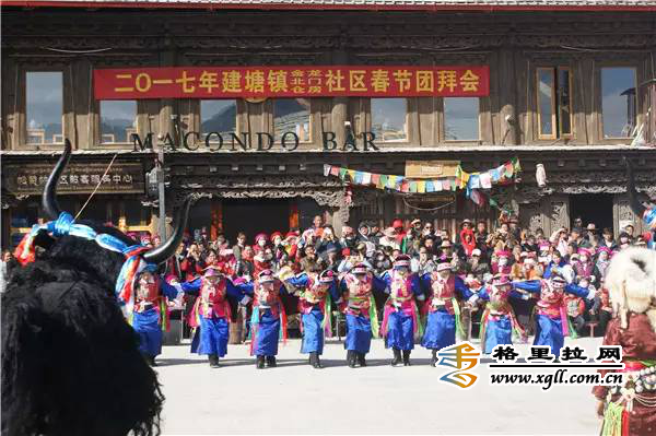 1月31日農歷大年初四,香格里拉市建塘鎮金龍、北門、倉房社區一年一度的歡樂香巴拉春節團拜會在獨克宗古城四方街舉行。精彩的文藝表演贏得在場觀眾陣陣掌聲,金龍的舞動、漂亮卓瑪飄動的水袖、老人們燦爛的笑容、游客咔嚓咔嚓的拍照聲、一陣陣的歡聲笑語讓現場氣氛充滿了年的味道和熱鬧的氣息。