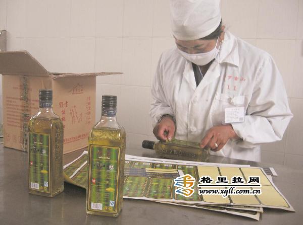 碧羅雪山公司工人給核桃油系列產(chǎn)品貼標(biāo)簽。