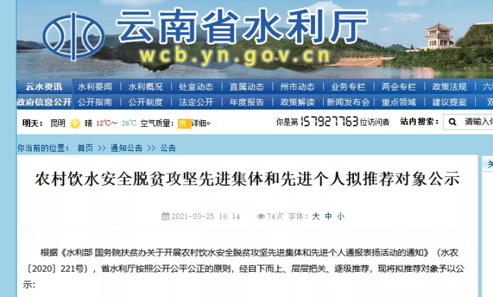云南省水利廳網(wǎng)站發(fā)布公示