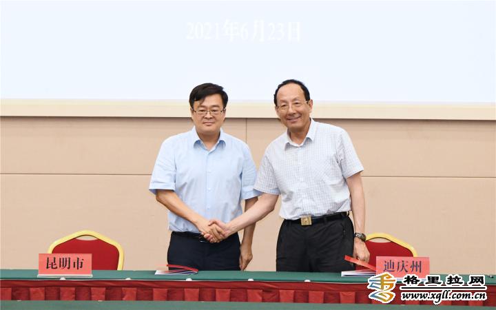 昆明市委副書記、市長(zhǎng)、滇中新區(qū)黨工委副書記、管委會(huì)主任劉佳晨,迪慶州委副書記、州長(zhǎng)齊建新代表兩地正式簽署《“十四五”昆迪友好合作框架協(xié)議》。 視頻 程連元在會(huì)上指出,昆明市和迪慶州自1996年7月兩地締結(jié)為友好市州,特別是2016年簽訂《“十三五”昆迪友好合作框架協(xié)議》以來,雙方圍繞“共同團(tuán)結(jié)奮斗、共同繁榮發(fā)展”的主題,攜手并肩、互促共進(jìn),堅(jiān)定不移地推進(jìn)昆迪對(duì)口幫扶友好合作,取得了豐碩成果。“十三五”時(shí)期,雙方共同推進(jìn)友好合作走深走實(shí)。經(jīng)濟(jì)合作方面,有力推動(dòng)了兩地產(chǎn)業(yè)協(xié)調(diào)、配套、聯(lián)動(dòng)發(fā)展。民生事業(yè)方面,為廣大群眾辦了一批實(shí)事好事。互學(xué)互鑒方面,促進(jìn)了兩地干部群眾互學(xué)互鑒。