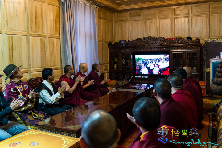 在松贊林寺,僧人們在民主管理委員會大樓集中觀看慶祝大會直播,聆聽習近平總書記的重要講話,大家一邊看,一邊感嘆在中國共產黨領導下迪慶在民族團結、宗教和順方面取得的成績。松贊林寺民管會常務副主任丹春培楚在收看完慶祝大會后心情激動:“在中國共產黨成立100周年之際,作為宗教界代表人士,我為祖國取得的成績感到驕傲,為自己能見證家鄉的發展感到自豪。沒有中國共產黨,就沒有藏傳佛教的今天和廣大信教群眾的幸福生活。今后,我將更加積極主動地帶領全體民管會成員,充分發揮寺院民管會在政府與廣大宗教教職人員之間的橋梁紐帶作用,自覺維護民族團結、維護祖國統一。”