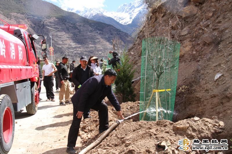 香格里拉網訊 (記者 江初) 近日,德欽縣云嶺鄉紅坡村開展了第三屆“我為家鄉種棵樹 同心共建思鄉林”義務植樹志愿活動,紅坡村的村道兩旁又增添了些許新綠。 紅坡村主任都吉茸介紹,在外工作的紅坡村籍干部職工很多,他們雖然在外工作,但一直心系家鄉,想為家鄉的發展添磚加瓦。經過幾番商議后,大家想出了每年回鄉義務植樹的法子,大家都認為植樹是造福子孫后代的好事。 為了方便在外工作人員回鄉種樹,該村特意把種樹時間選在周末。“看到群里通知這周六要種樹,我周五晚上忙完工作后,夜里10點才從香格里拉市城區趕回老家。”在香格里拉市工作的追追大姐說。 記者在植樹現場看到,村道兩邊整齊排列的近兩米高的樹上均掛有一張小卡片,上面均寫有植樹者的名字。“為了提高樹苗成活率,每棵樹都有一個責任人,樹苗從種下去直至成活都由這個人負責,如果出現樹苗枯死等情況,則由這個責任人補種并養活。”都吉茸告訴記者。