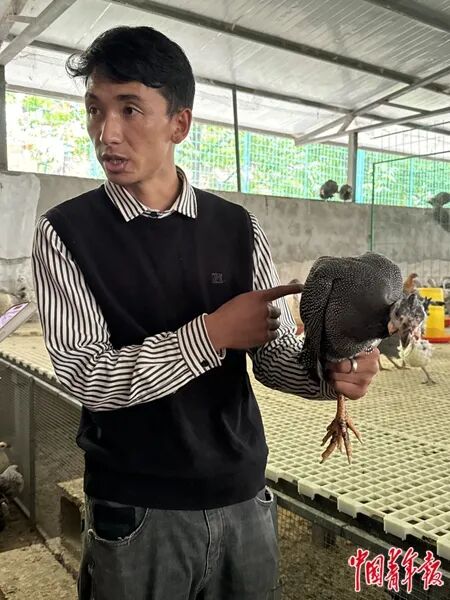 7月的一天,團迪慶州委、迪慶州青年創業就業協會一行人,驅車近兩小時,從香格里拉市前往德欽縣拖頂鄉德吉村,繞過彎彎曲曲的山路,來到峽谷里格茸尼瑪的養雞場,了解他的近期情況。 格茸尼瑪2017年從云南農業職業技術學院畜牧獸醫專業畢業后,到云南一家養雞場實習,學會了雞苗孵化、疫苗接種、育雛與脫溫雞的日常管理。一年后,他回鄉創業,選擇養殖蛋白質含量高的珍珠雞。但這個新品種出欄后,幾周都沒賣出去。格茸尼瑪不得不在香格里拉市農貿市場租了一個店鋪。經過發放宣傳單、與火鍋店合作、線上生鮮冷鏈等多種推銷手段,終于打開銷路,幾千只珍珠雞銷售一空。 2022年3月,通過競選,27歲的格茸尼瑪當選為德吉村村委會主任。今年,格茸尼瑪成為迪慶州青聯委員,他的朋友圈變得更大了。在團組織的幫助下,線下銷售和生鮮冷鏈銷售逐漸擴大,截至目前,他已帶領19戶農戶參與養殖7000多只土雞與珍珠雞,平均每月銷售1000多只,增加了農戶的收入。