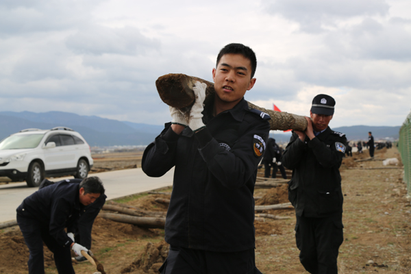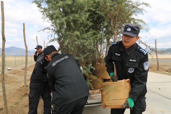 此次春季義務(wù)植樹活動(dòng)中,州公安局105名民(輔)警共栽種雪松和柳樹300棵。
