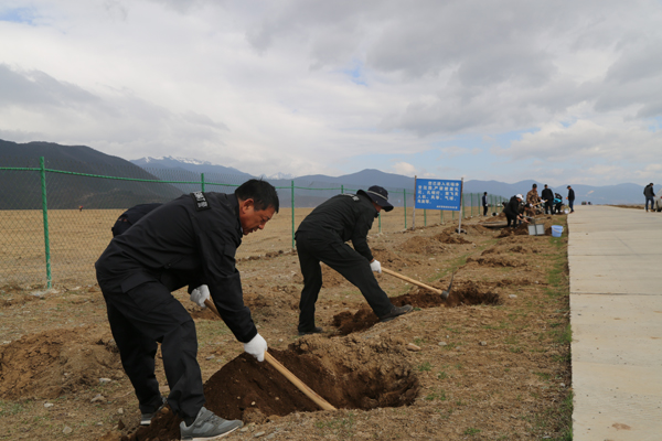 植樹現(xiàn)場(chǎng),處處是忙碌的身影。大家挖坑、栽樹、壓實(shí),每道工序都仔細(xì)認(rèn)真、一絲不茍。一番熱火朝天的勞動(dòng)之后,一棵棵新栽種的樹苗在陽光下亭亭玉立,為初春的香格里拉平添了一抹新綠。